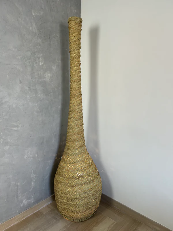La lámpara “Esteban” es una pieza central imponente que ilumina y transforma tu espacio. Con 190 cm de altura y 50 cm de ancho, ofrece una presencia elegante y moderna, mientras proporciona una luz cálida gracias a su diseño en esparto trenzado. Esta lámpara excepcional combina el encanto de la artesanía natural con una estética contemporánea, creando una atmósfera única y refinada en cualquier habitación. “Esteban” es ideal para interiores con techos altos, aportando un toque de luz y carácter.